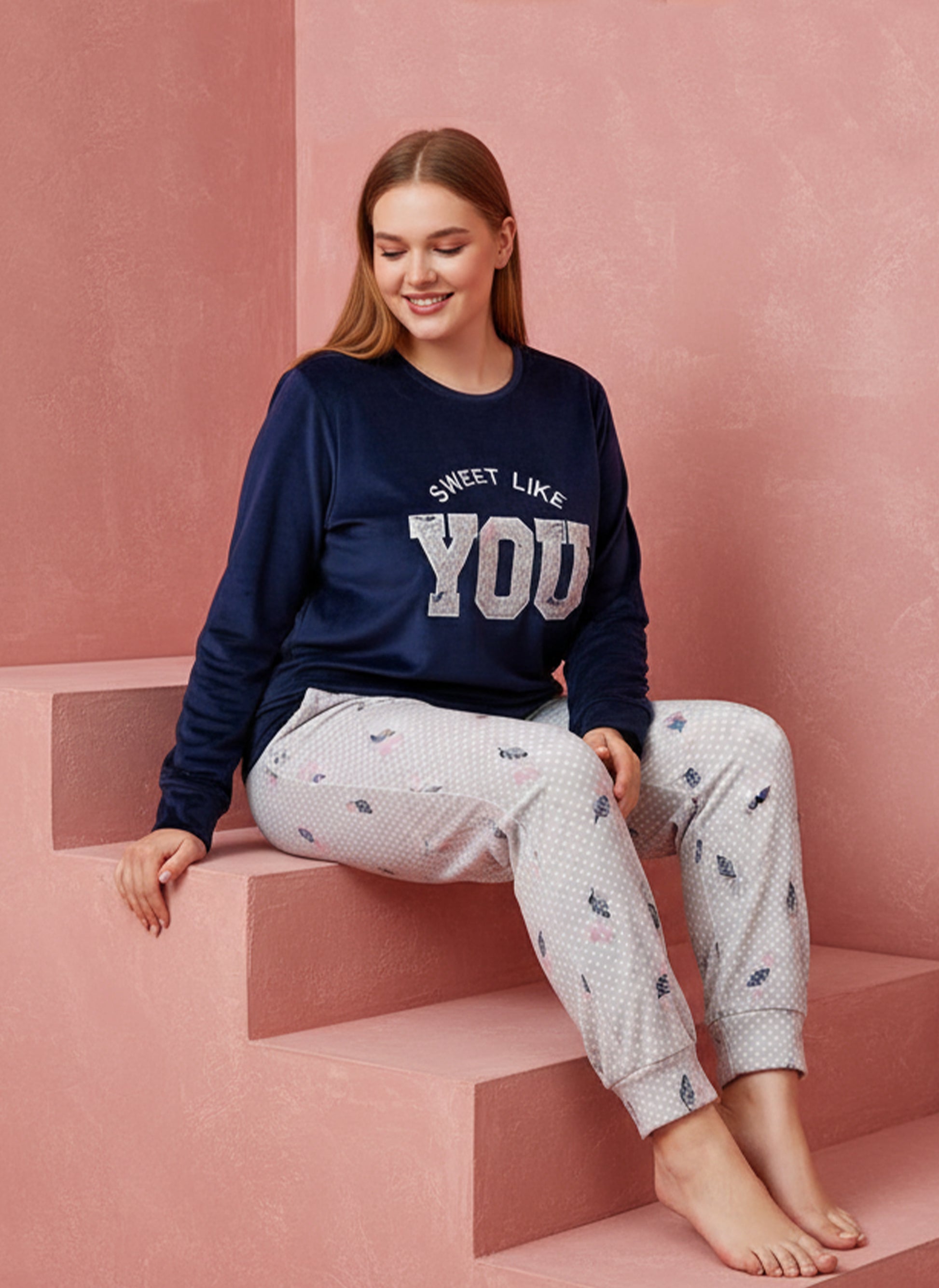 بيجامة قطيفة مبطنة