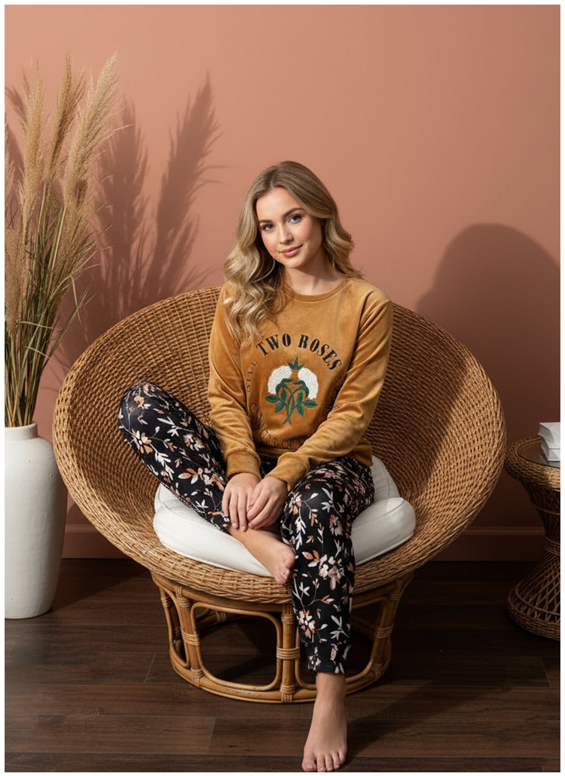 تتميز هذه البيجامة القطيفة المطرزة بتصميم أنيق يضفي لمسة فاخرة على راحتك المنزلية. مصنوعة من قماش قطيفة ناعم مبطن يمنح دفءً لا مثيل له، وتفاصيل التطريز الدقيقة تزيد من رقي المظهر وتجعلها خيارًا مثاليًا للأوقات المميزة. تجمع بين الراحة والجودة لتضمن لك استرخاءً متميزًا في كل لحظة.