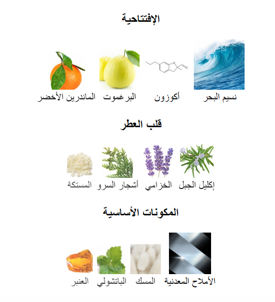 عطر أروماتك فوچير رجالي مستوحى من أعماق البحر وقوة الطبيعة. يفتتح بنفحات منعشة من نسيم البحر، الأكوزون، البرغموت والماندرين الأخضر، يتبعه قلب عطري من إكليل الجبل، الخزامي، أشجار السرو ولمسة من المستكة، ليستقر أخيرًا على قاعدة أنيقة من الأملاح المعدنية، المسك، الباتشولي والعنبر.