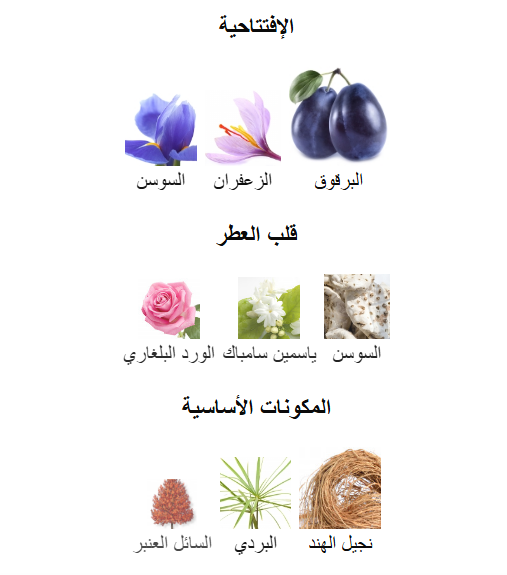 عطر شرقي زهري نسائي يجسد الفخامة والجرأة بأسلوب آسر. يفتتح برائحة مميزة من البرقوق الغني ممزوجًا بالزعفران والسوسن، ثم يكشف عن قلب فاخر من السوسن، ياسمين سامباك والورد البلغاري، ليستقر أخيرًا على قاعدة دافئة من نجيل الهند، البردي والعنبر السائل.