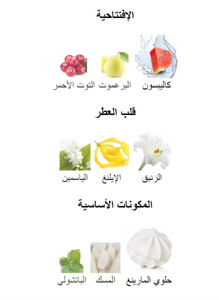 تبدأ رحلته بنفحات لذيذة من الكاليبسون، البرغموت، والتوت الأحمر تمنحك إشراقة فواكهية راقية تخطف الأنظار