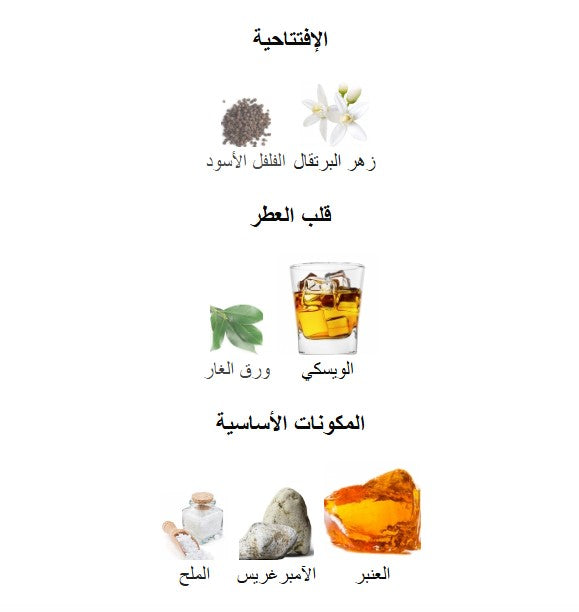 في القلب، ينبض العطر بنغمة جريئة من الويسكي وورق الغار تعكس الرجولة والعمق